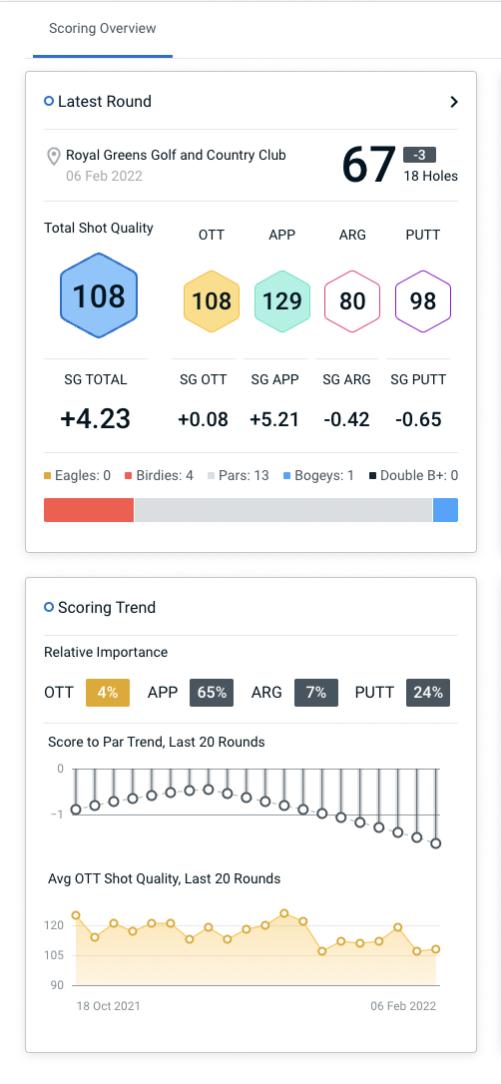 Steve Lewton's Clippd dashboard after the Saudi International